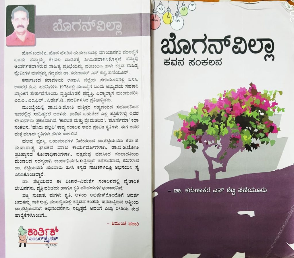 ಡಾ. ಕರುಣಾಕರ್ ಶೆಟ್ಟಿ ಅವರ ಕೃತಿ “ಬೋಗನ್ ವಿಲ್ಲಾ”ಅವಲೋಕನ ಡಾ.ಜಿ.ಪಿ.ಕುಸುಮ, ಮುಂಬಯಿ