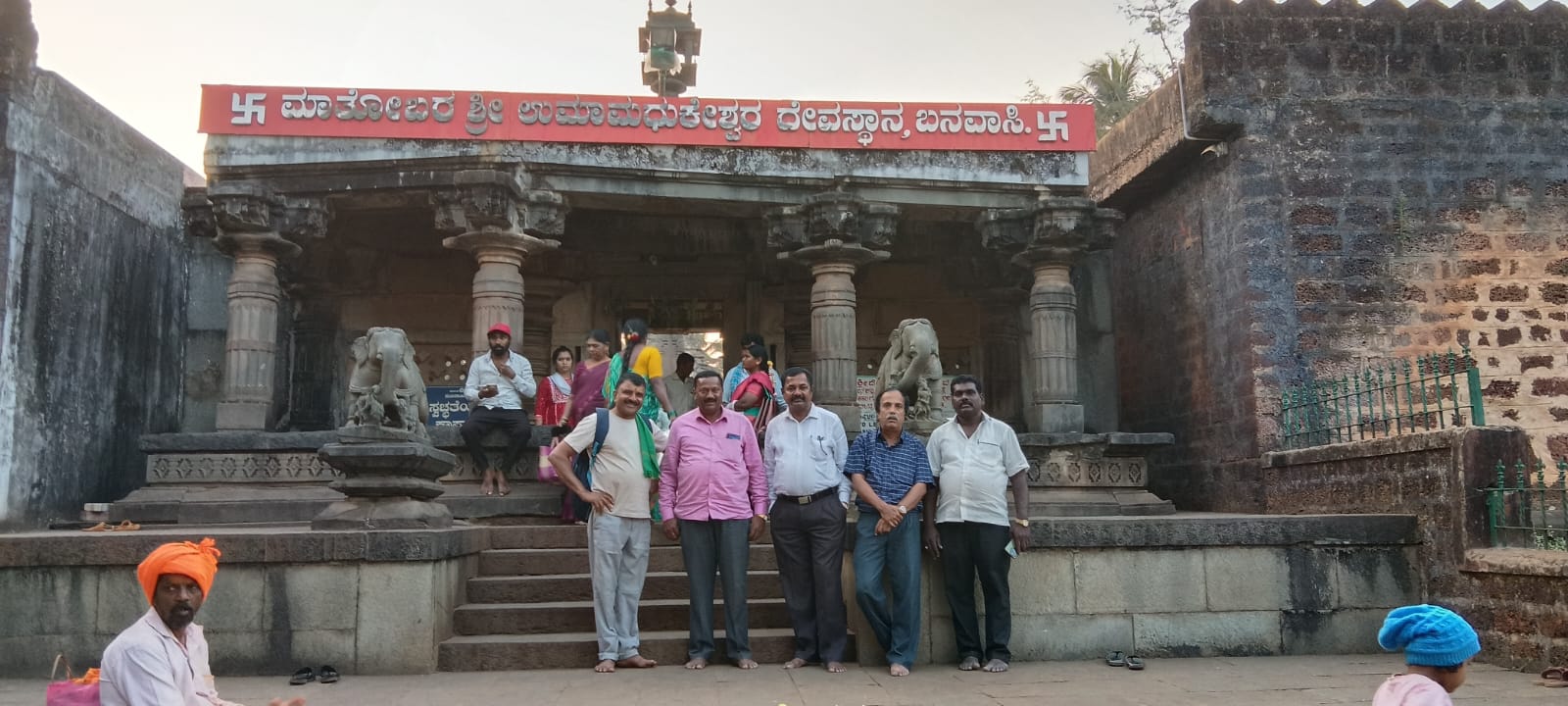 ನಾವು ಶಿರಸಿಯಿಂದ ಬನವಾಸಿ ಬಸ್ಸು ಹತ್ತಿದಾಗಲೇ ನಾಲ್ಕೂವರೆ ಆಗಿತ್ತು. ಶಾಲೆ ಬಿಡುವ ವೇಳೆ ಬಸ್ ರಷ್ ಆಗಿತ್ತು. ನುಗ್ಗಿ ಬಸ್ ಹತ್ತಿ ಬನವಾಸಿಯಲ್ಲಿ ಇಳಿದಾಗ ಐದೂವರೆ ಆಗಿತ್ತು. ಕ್ಯಾಂಟಿನ್ನಲ್ಲಿ ಟೀ ಕುಡಿದು ಮೈಂಡ್ ಪ್ರೆಶ್ ಆಯಿತು. ಅಲ್ಲಿ ದೇವಾಲಯದ ದಾರಿ ಕೇಳಲು ನೀವು ಆಟೋದಲ್ಲಿ ಹೋಗಿ ಆರೂವರೆಗೆ ದೇವಸ್ಥಾನದ ಬಳಿಗೆಯೇ ಬಸ್ ಬರುತ್ತದೆ ಅಲ್ಲಿ ವಾಪಸ್ಸು ಹತ್ತಬಹುದು ಎಂದರು. ಎರಡು ಆಟೋದಲ್ಲಿ ಮಧುಕೇಶ್ವರ ದೇವಸ್ಥಾನಕ್ಕೆ ಹೋದವು. ದೇವಸ್ಥಾನದ ಪ್ರವೇಶದ್ವಾರದಲ್ಲಿ ನಾವು ಐವರು ಎ.ಹೆಚ್.ಗಣೇಶ್, ಪುಟ್ಟಸ್ವಾಮಿಗೌಡರು, ಬೇಕ್ರೀ ರಾಜೇಗೌಡರು, ಪಟ್ನ ವೆಂಕಟೇಗೌಡರು ಪೋಟೋ ತೆಗೆಸಿಕೊಂಡವು. ಅರ್ಚಕರು ನಿಮಗೆ ಗೈಡ್ ಬೇಕೆ ಎಂದರು. ಹೌದೆಂದು ಅವರಿಂದ ಅನೇಕ ಐತಿಹಾಸಿಕ ಮಾಹಿತಿ ಪಡೆದೆವು.