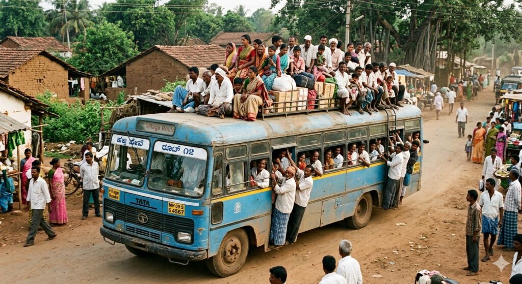 ಆ ಬಸ್ ಒಂದ ತರಹ ಆಲ್ ಇಂಡಿಯಾ ರೇಡಿಯೊ, ಮಿರ್ಚ ಮಸಾಲಾ ಕಡೆಗೆ ನಮೆಗೆಲ್ಲಾ ಒಂದು ಮಿನಿ ಪ್ರಪಂಚವೇ ಆಗಿರುತ್ತಿತ್ತು. ಇದರೋಳಗೆ ಅಜ್ಜ -ಅಜ್ಜಿ, ಅಂಟಿ ಅಂಕಲಗಳು ಮಾತುಗಿಳಿದಾಗ ಅವರ ಮನೆ ಮನೆ ರಾಮಾಯಣ, ಹರಿಕಥೆಗಳು ನಮ್ಮ ಕಿವಿಗಳಿಗೂ ಬಿಳುತ್ತಿದ್ದವು. ಹಿಂದೆ ಕುಳಿತು ಚೇಡಿಸುವ ಹುಡಗರದು ಇನ್ನೊಂದು ತರಹ. ಸುಸ್ತಾಗಿ ಬೇಸತ್ತು ಸ್ವಲ್ಪ ನಿದ್ರೆಗೆ ಜಾರಿದರೆ. ಚೇಡಿಸುತ ಹಾಡುವವರು